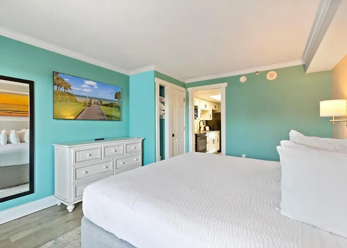 Situated around a 25-minute walk from the Pavilion Park, Immaculate Ocean Front Condo With Fireplace! 1Br King Suite - Sleeps 6! - Caribbean Resort 427 Myrtle Beach villa provides access to numerous tourist attractions in the area.